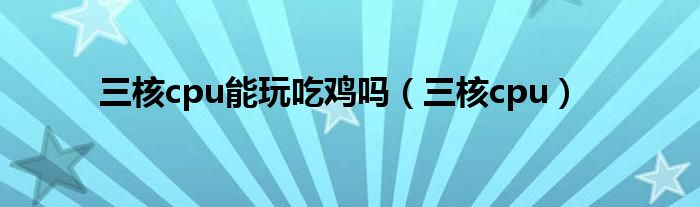 以上就是【三核cpu能玩吃鸡吗,三核cpu】相关内容。