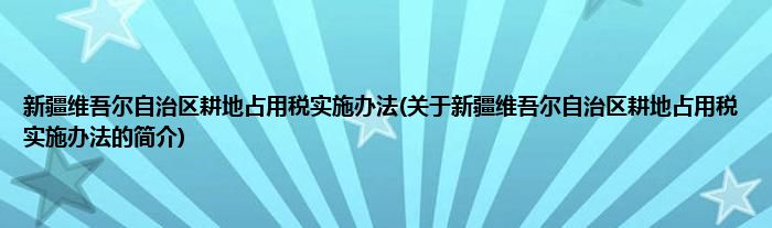 本文关于新疆维吾尔自治区耕地占用税实施办法的简介就讲解完毕,希望对大家有所帮助。