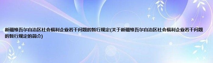 大家好,新疆维吾尔自治区社会福利企业若干问题的暂行规定,关于新疆维吾尔自治区社会福利企业若干问题的暂行规定的简介很多人还不知道,现在让我们一起来看看吧!