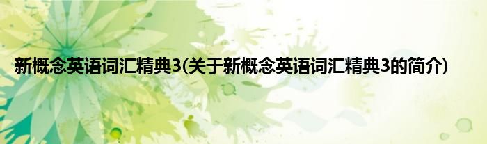 新概念英语词汇精典3(关于新概念英语词汇精典3的简介)