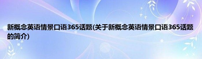 新概念英语情景口语365话题(关于新概念英语情景口语365话题的简介)