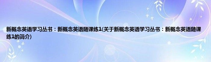 1、 《新概念英语学习丛书:新概念英语随课练1》特点是两课一练,另有五个单元的综合测试。