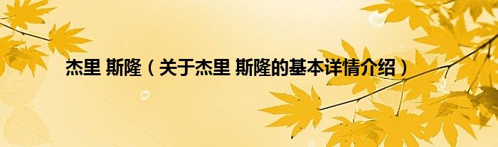 本文关于杰里 斯隆的基本详情介绍就讲解完毕,希望对大家有所帮助。