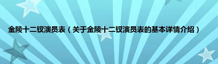 本文关于金陵十二钗演员表的基本详情介绍就讲解完毕,希望对大家有所帮助。