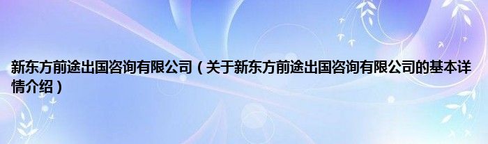 本文关于新东方前途出国咨询有限公司的基本详情介绍就讲解完毕,希望对大家有所帮助。