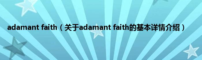 本文关于adamant faith的基本详情介绍就讲解完毕,希望对大家有所帮助。
