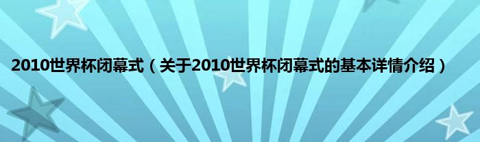 本文关于2010世界杯闭幕式的基本详情介绍就讲解完毕,希望对大家有所帮助。