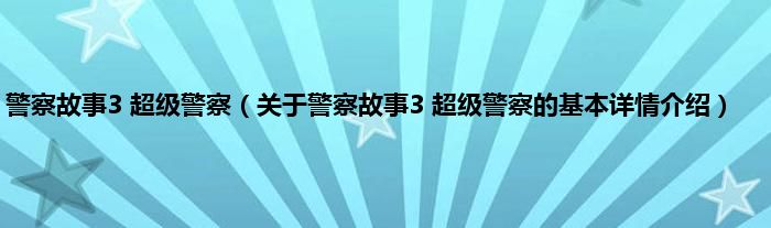 本文关于警察故事3 超级警察的基本详情介绍就讲解完毕,希望对大家有所帮助。