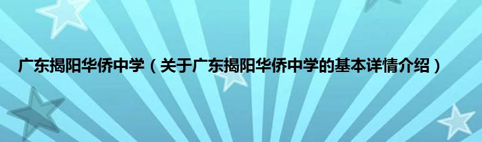 本文关于广东揭阳华侨中学的基本详情介绍就讲解完毕,希望对大家有所帮助。