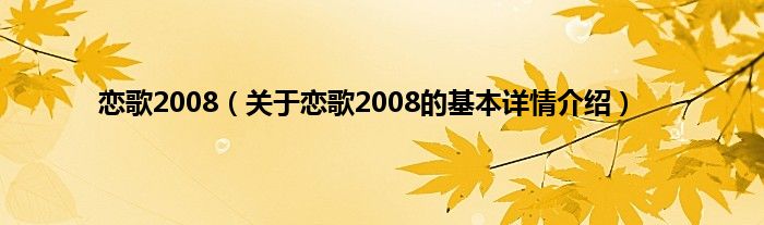 本文关于恋歌2008的基本详情介绍就讲解完毕,希望对大家有所帮助。