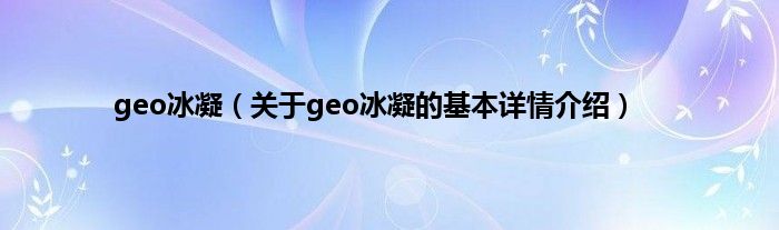 本文关于geo冰凝的基本详情介绍就讲解完毕,希望对大家有所帮助。