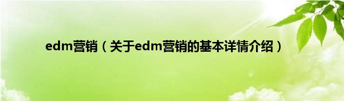本文关于edm营销的基本详情介绍就讲解完毕,希望对大家有所帮助。