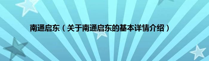 本文关于南通启东的基本详情介绍就讲解完毕,希望对大家有所帮助。