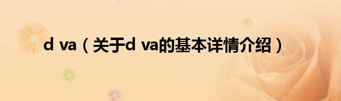 本文关于d va的基本详情介绍就讲解完毕,希望对大家有所帮助。