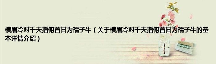 本文关于横眉冷对千夫指俯首甘为孺子牛的基本详情介绍就讲解完毕,希望对大家有所帮助。