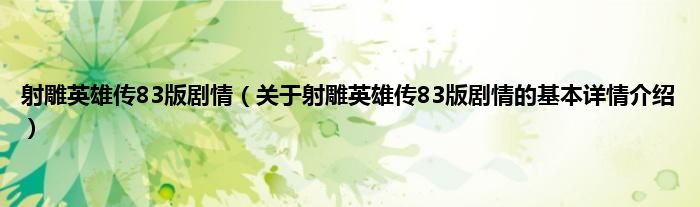 本文关于射雕英雄传83版剧情的基本详情介绍就讲解完毕,希望对大家有所帮助。