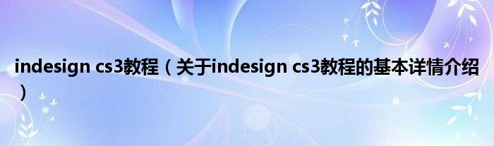 本文关于indesign cs3教程的基本详情介绍就讲解完毕,希望对大家有所帮助。