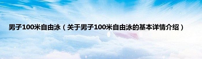 本文关于男子100米自由泳的基本详情介绍就讲解完毕,希望对大家有所帮助。