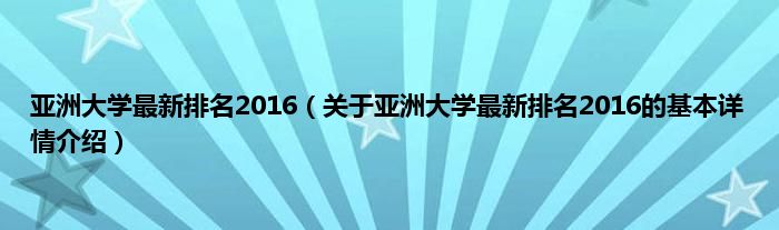 本文关于亚洲大学最新排名2016的基本详情介绍就讲解完毕,希望对大家有所帮助。