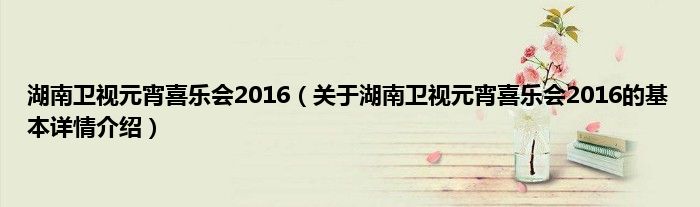 本文关于湖南卫视元宵喜乐会2016的基本详情介绍就讲解完毕,希望对大家有所帮助。
