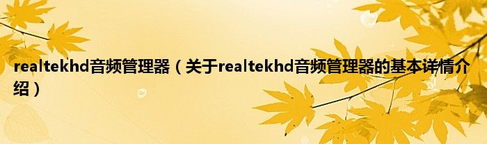 realtekhd音频管理器(关于realtekhd音频管理器的基本详情介绍)
