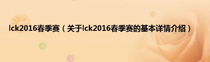 本文关于lck2016春季赛的基本详情介绍就讲解完毕,希望对大家有所帮助。