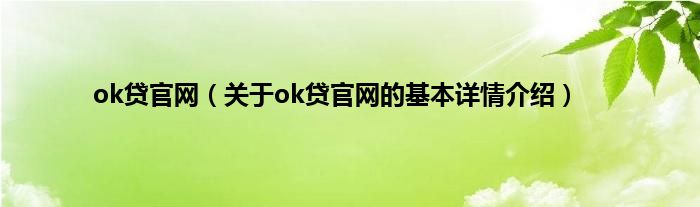 本文关于ok贷官网的基本详情介绍就讲解完毕,希望对大家有所帮助。