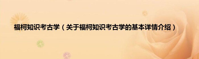 本文关于福柯知识考古学的基本详情介绍就讲解完毕,希望对大家有所帮助。
