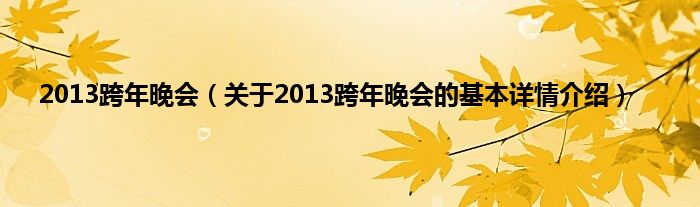 本文关于2013跨年晚会的基本详情介绍就讲解完毕,希望对大家有所帮助。