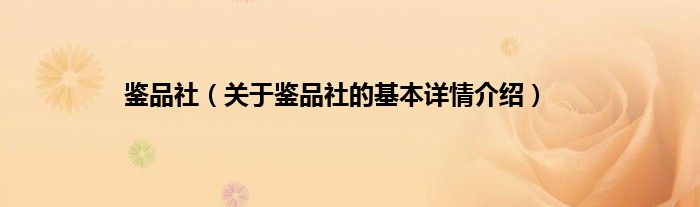 大家好我是小蝌蚪,鉴品社,关于鉴品社的基本详情介绍很多人还不知道,那么现在让我们一起来看看吧!