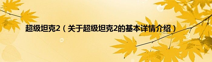 本文关于超级坦克2的基本详情介绍就讲解完毕,希望对大家有所帮助。