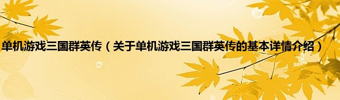 本文关于单机游戏三国群英传的基本详情介绍就讲解完毕,希望对大家有所帮助。