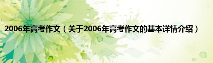 本文关于2006年高考作文的基本详情介绍就讲解完毕,希望对大家有所帮助。