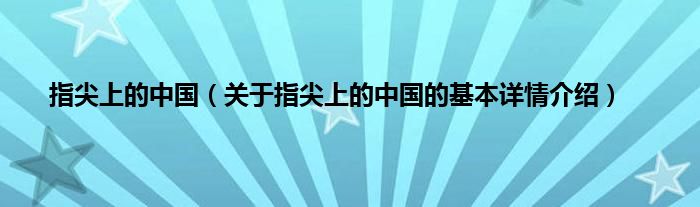 本文关于指尖上的中国的基本详情介绍就讲解完毕,希望对大家有所帮助。