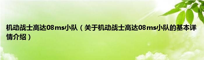 本文关于机动战士高达08ms小队的基本详情介绍就讲解完毕,希望对大家有所帮助。