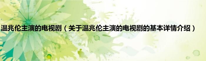 本文关于温兆伦主演的电视剧的基本详情介绍就讲解完毕,希望对大家有所帮助。