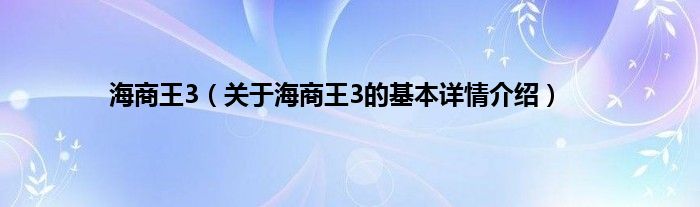 本文关于海商王3的基本详情介绍就讲解完毕,希望对大家有所帮助。