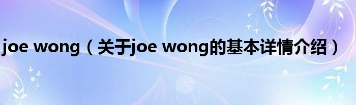 本文关于joe wong的基本详情介绍就讲解完毕,希望对大家有所帮助。