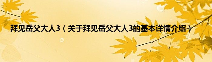 本文关于拜见岳父大人3的基本详情介绍就讲解完毕,希望对大家有所帮助。