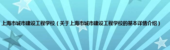 本文关于上海市城市建设工程学校的基本详情介绍就讲解完毕,希望对大家有所帮助。