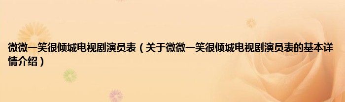 本文关于微微一笑很倾城电视剧演员表的基本详情介绍就讲解完毕,希望对大家有所帮助。