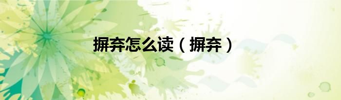 以上就是【摒弃怎么读,摒弃】相关内容。
