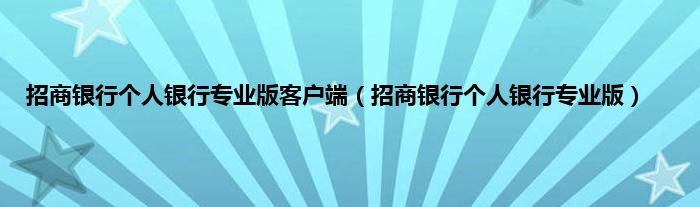 以上就是【招商银行个人银行专业版客户端,招商银行个人银行专业版】相关内容。