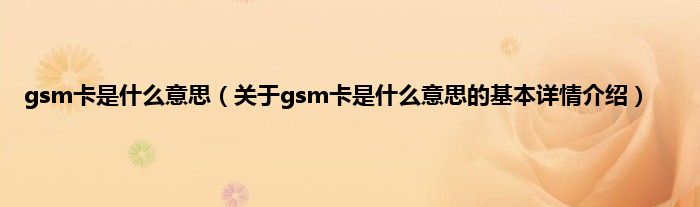 本文关于gsm卡是什么意思的基本详情介绍就讲解完毕,希望对大家有所帮助。