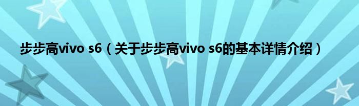 本文关于步步高vivo s6的基本详情介绍就讲解完毕,希望对大家有所帮助。