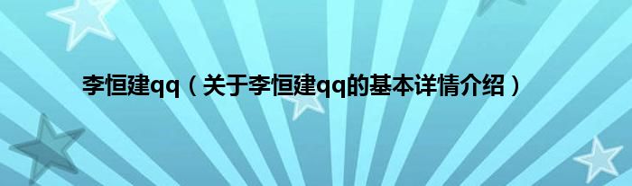 本文关于李恒建qq的基本详情介绍就讲解完毕,希望对大家有所帮助。