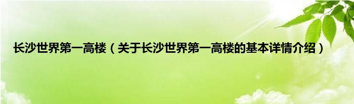 本文关于长沙世界第一高楼的基本详情介绍就讲解完毕,希望对大家有所帮助。