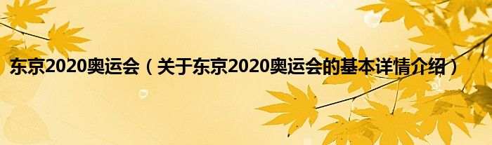 本文关于东京2020奥运会的基本详情介绍就讲解完毕,希望对大家有所帮助。