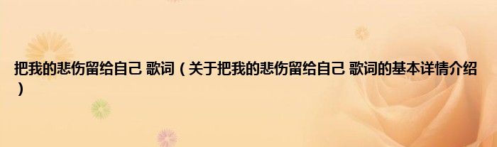 本文关于把我的悲伤留给自己 歌词的基本详情介绍就讲解完毕,希望对大家有所帮助。