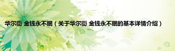 本文关于华尔街 金钱永不眠的基本详情介绍就讲解完毕,希望对大家有所帮助。